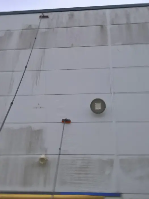 The eradication of cyanobacteria and atmospheric pollutants from modern industrial façades requires biocide-active soft washing to prevent material delamination. Specifically designed for retail units and distribution centers, our process eliminates organic growth from sensitive composite panels. By avoiding high-pressure agitation, we preserve the protective coatings of the cladding, ensuring long-term material integrity and brand-critical visual standards.